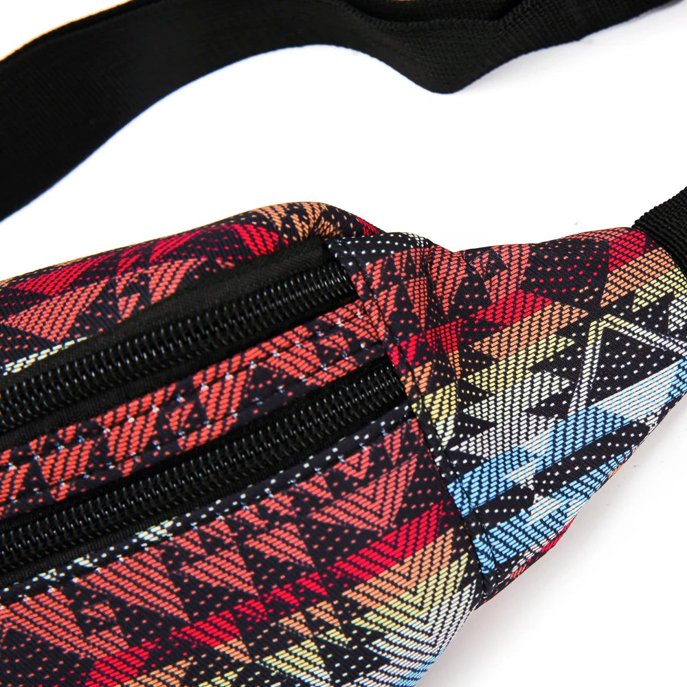 This women's fanny pack features a bohemian fabric print design, perfect for sports and travel. It includes multiple pockets for your phone and essentials.
