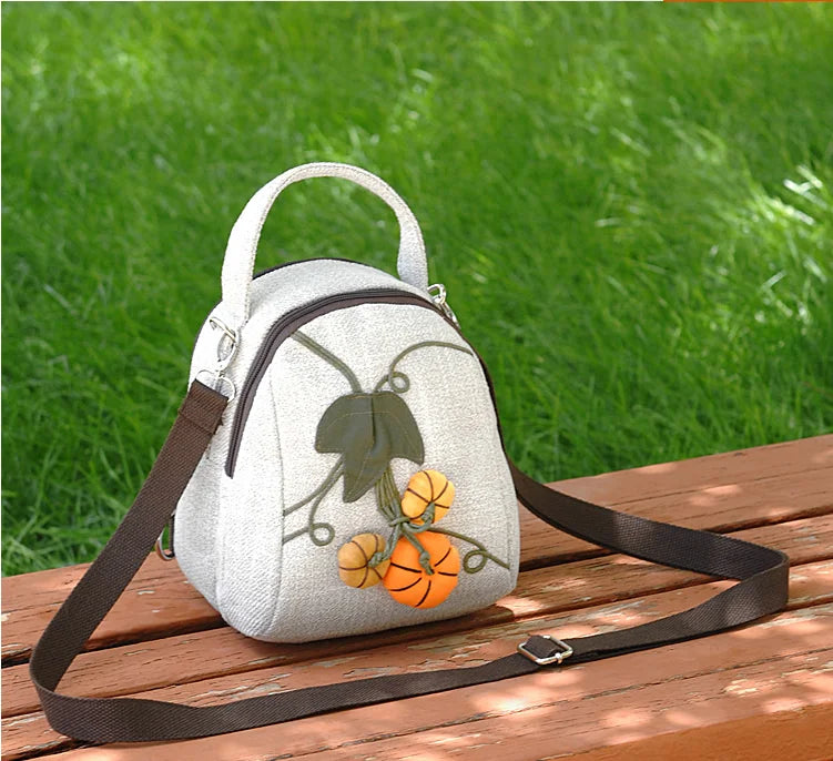 This small handbag features national mini shopping string appliques and bohemian prints, perfect for casual use. It is a versatile bag that can be used for various occasions.