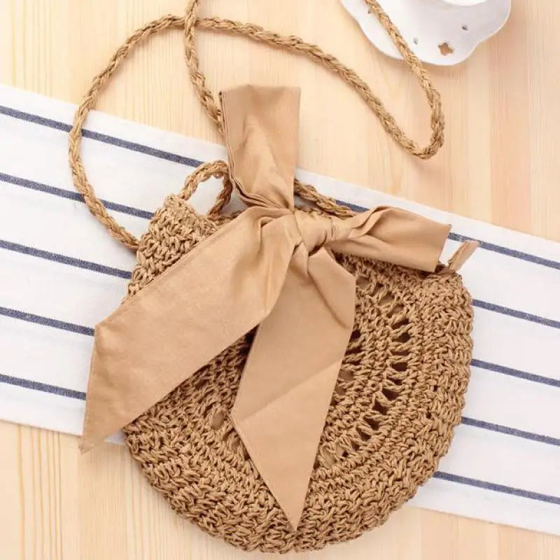 Bohemian Straw Bag with Bowknot - Shoulder Bag for Women