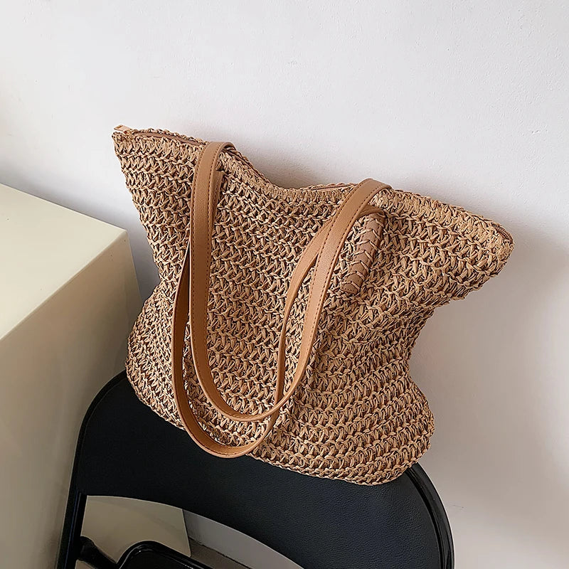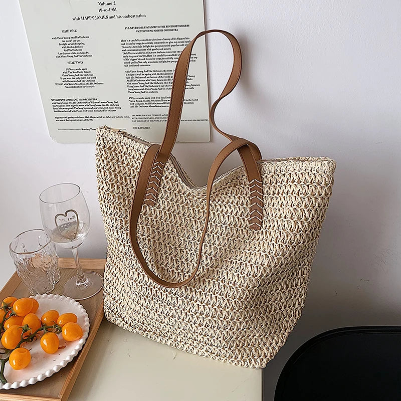 Bohemian Straw Beach Tote Bag Hand-Woven Shoulder Shopper