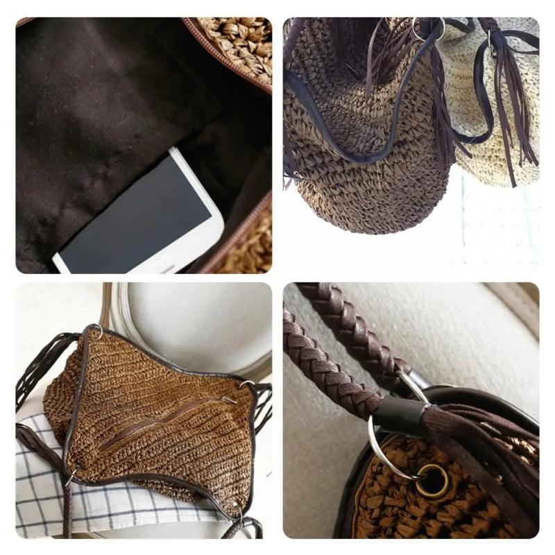Stay stylish and organized with this bohemian hand-woven straw shoulder bag. It's perfect for beach vacations and travel, offering a spacious bucket design for all your essentials.