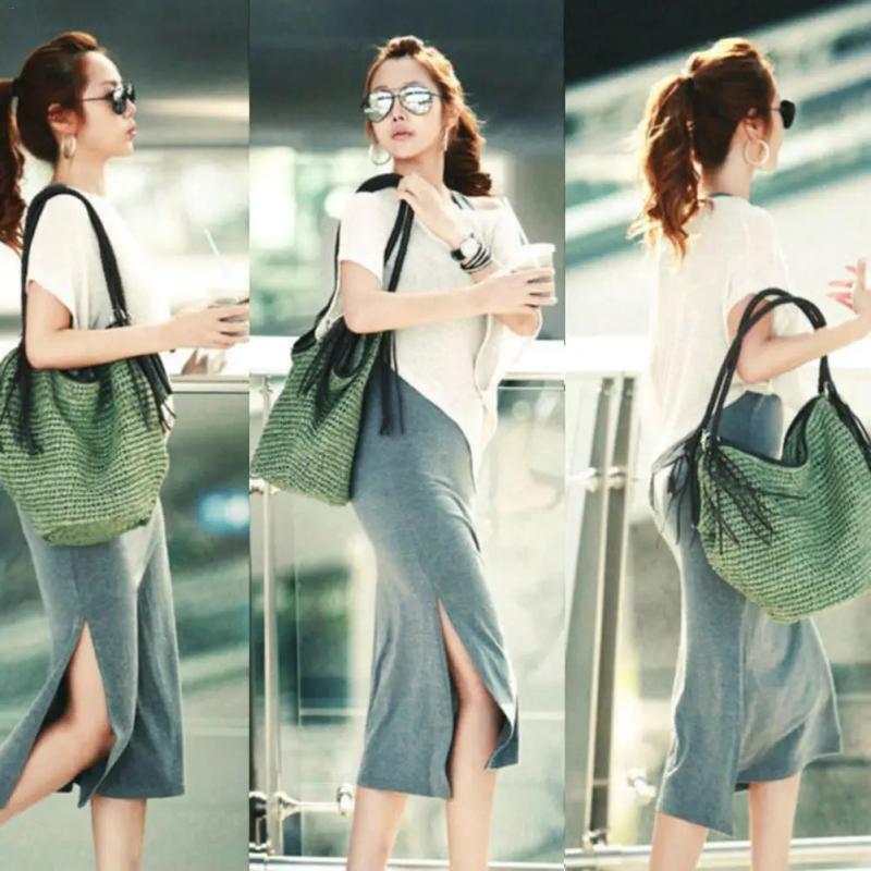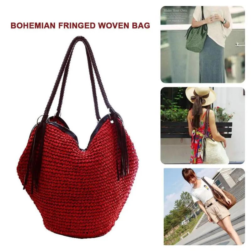 Bohemian Straw Shoulder Bag Casual Tote Large Capacity Beach Vacation Handbag
