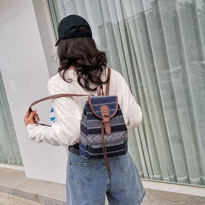 This Bohemian Striped Backpack is the perfect travel companion for women made of durable cotton canvas material.