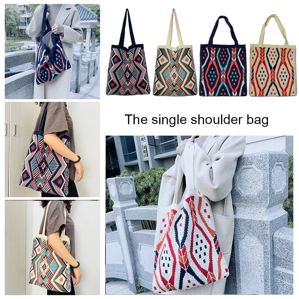 Stay stylish with this shoulder tote bag, perfect for shopping or carrying your essentials. Hand knitted with a boho crochet design, this bag is a must-have accessory for women.
