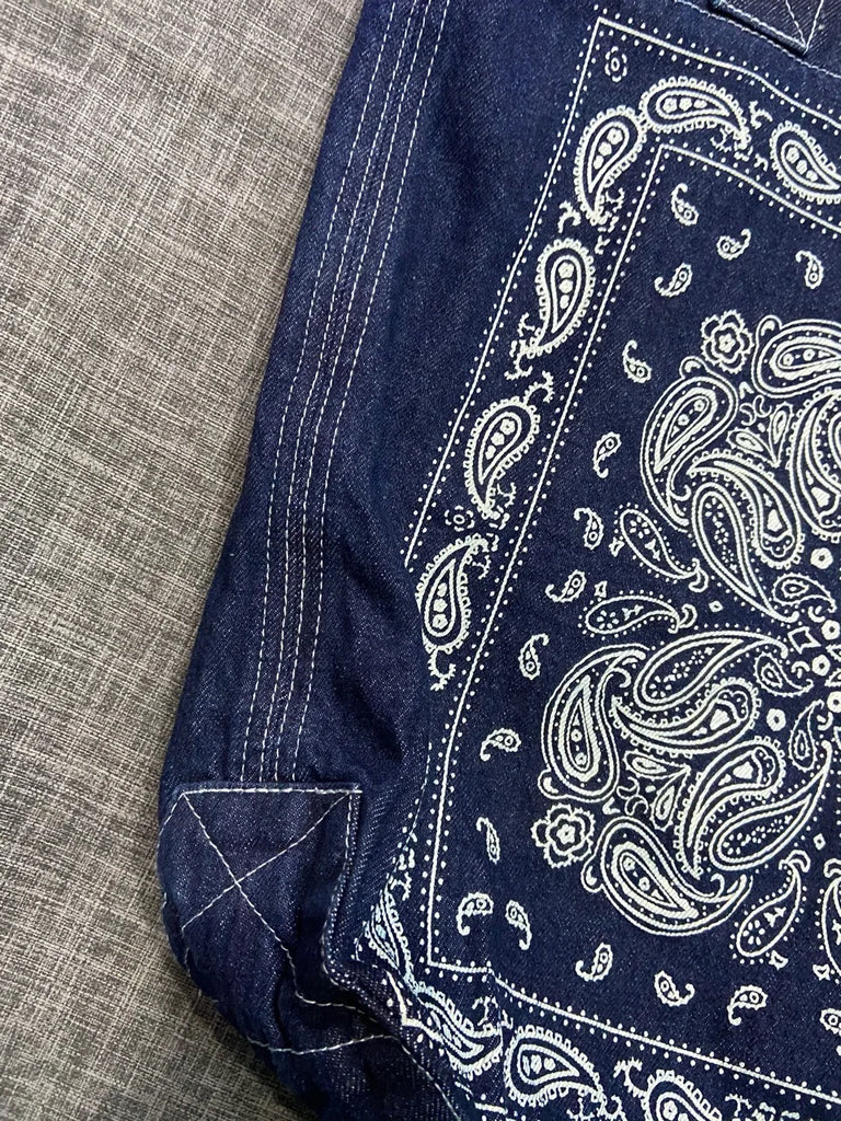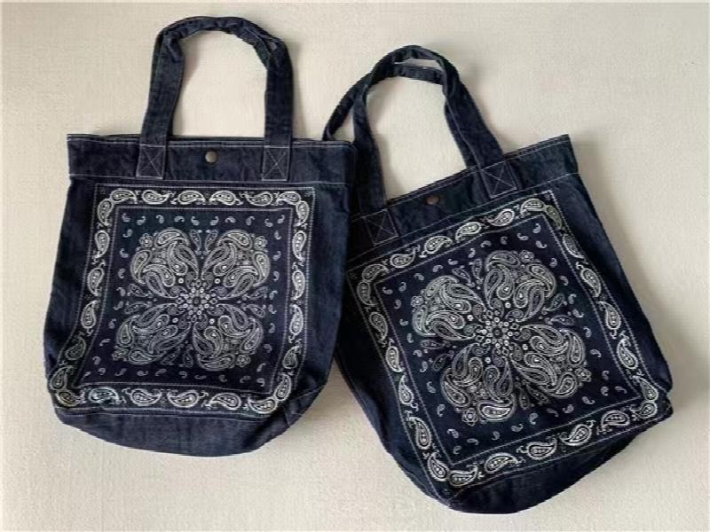 - Boho denim shoulder bag with cashew flower print