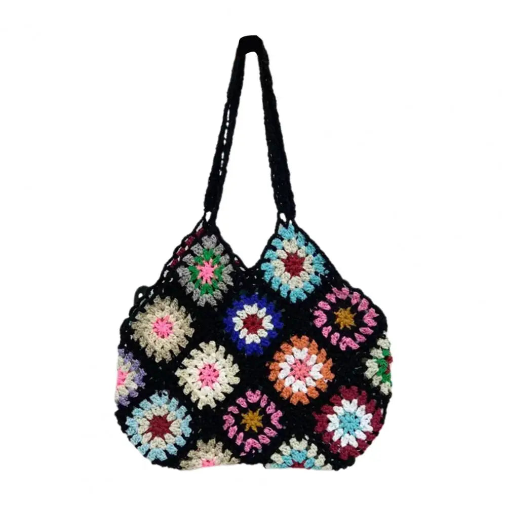 Boho Floral Crochet Large Tote Bag Multicolor Handbag