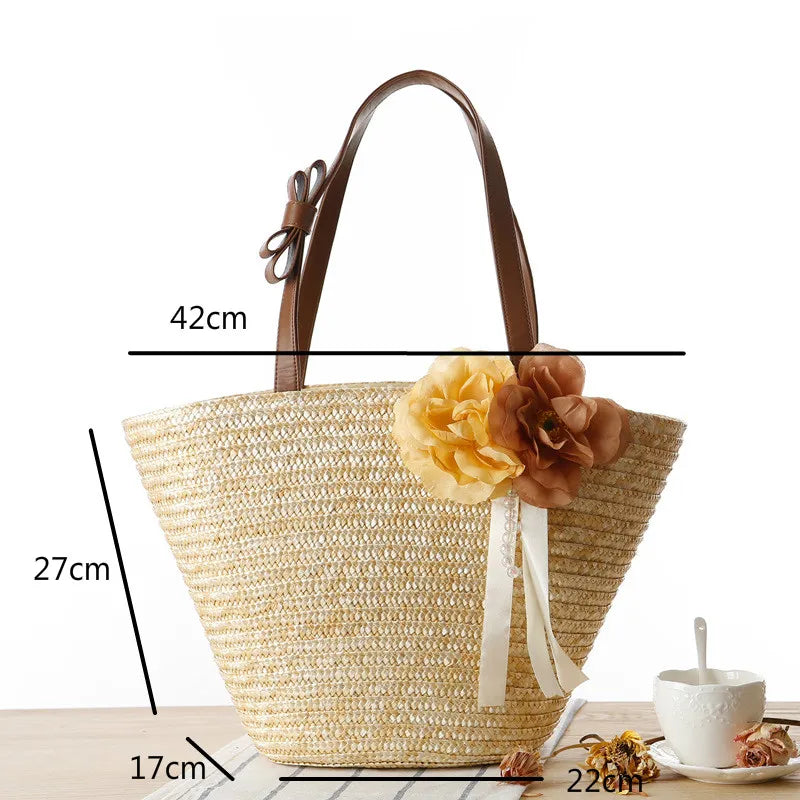 Boho Flowers Women Straw Bag Large Capacity Beach Tote