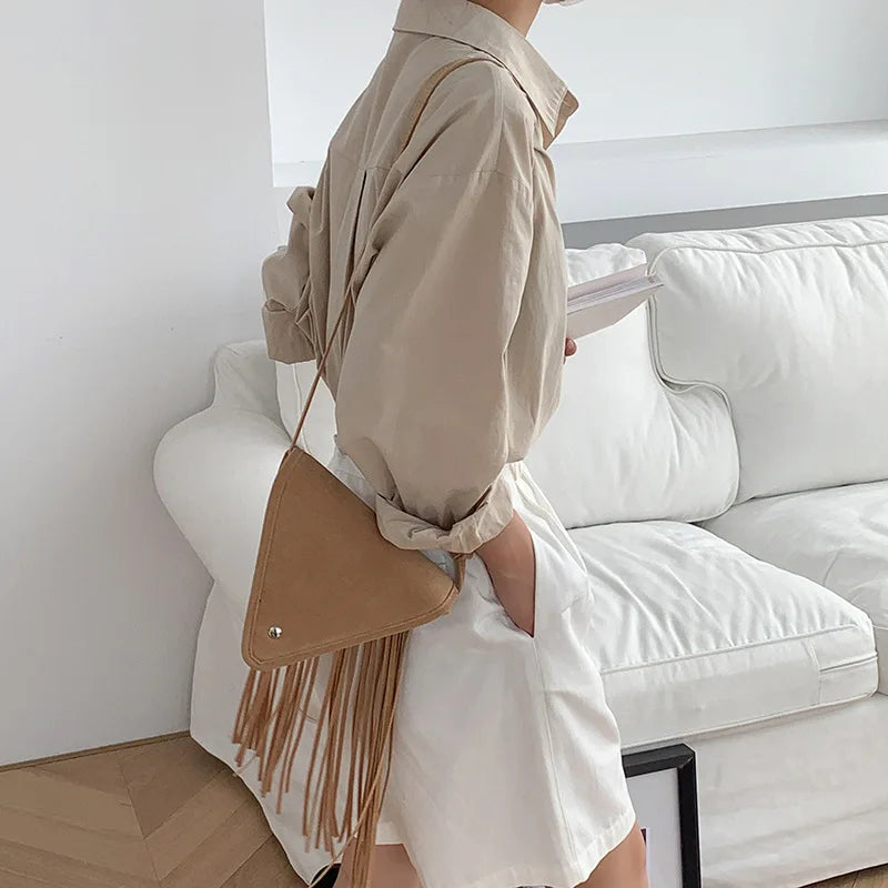 Boho Fringed PU Leather Crossbody Bag Vintage Tassel Shoulder Messenger