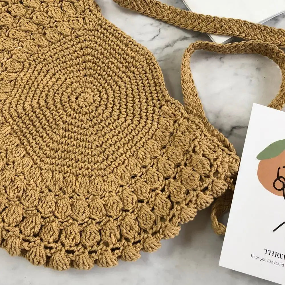 Boho Half Moon Straw Bag Women Shoulder Crossbody Tote Beach Rattan Bag