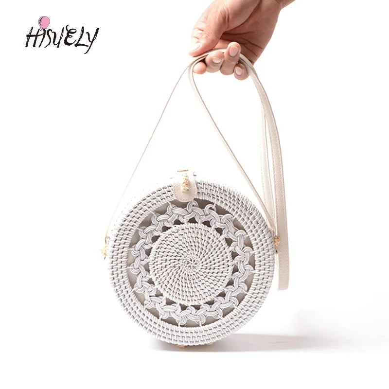 Boho Round Rattan Crossbody Bag Straw Woven Circle Shoulder Handbag