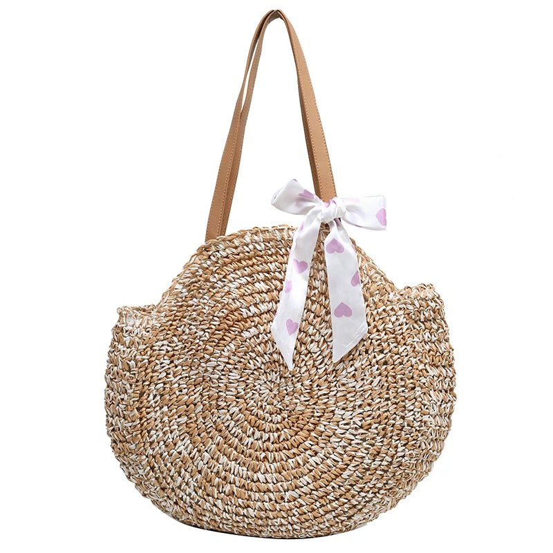 Boho Straw Beach Tote Bag Women's Shoulder Handbag