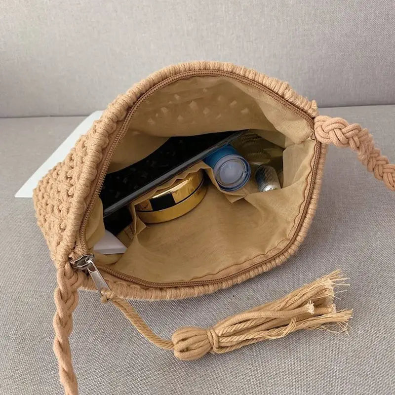 Boho Women Straw Beach Bag Shoulder Messenger Tote Khaki Purse KL1043