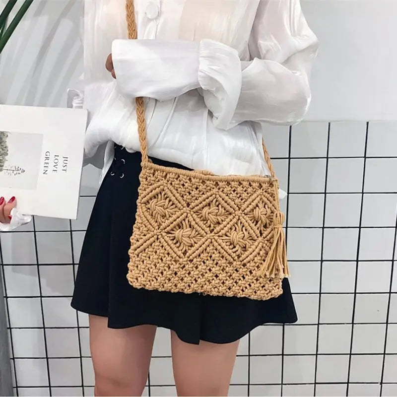 - Stylish Bohemian straw beach bag for women