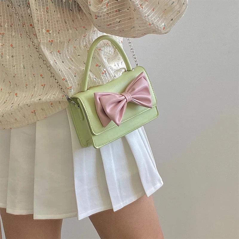 This girly bowknot small shoulder bag is made of high-quality PU leather, perfect for adding a touch of style to any outfit. Ideal for parties and events, it features a chain strap for easy carrying.