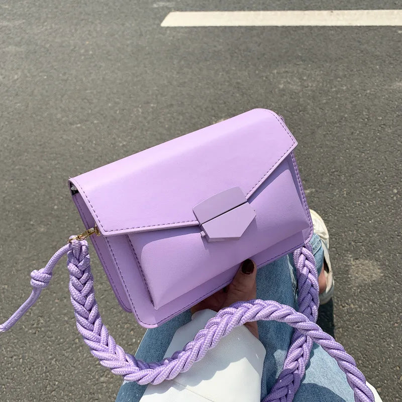 Braided Shoulder Strap Crossbody Bag PU Leather Small Square Bag