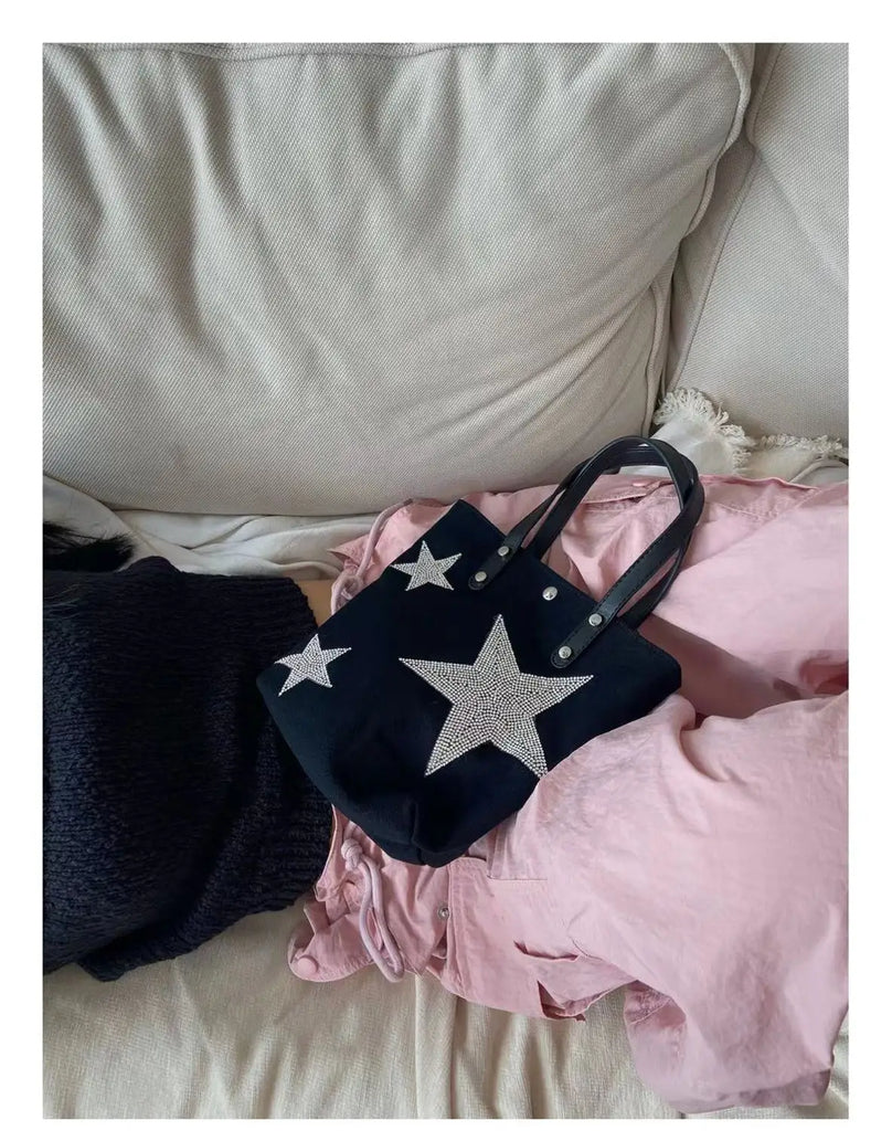 Embrace the Y2K style with this vintage canvas handbag that features a star pentagram design. Perfect for hot girls who love unique accessories.