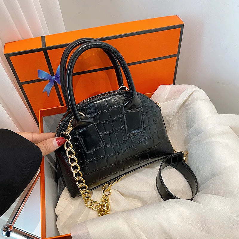 Bright Finish Leather Shell Bag Chain Crossbody Women's Bag