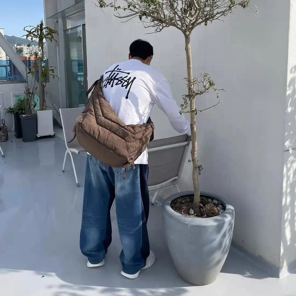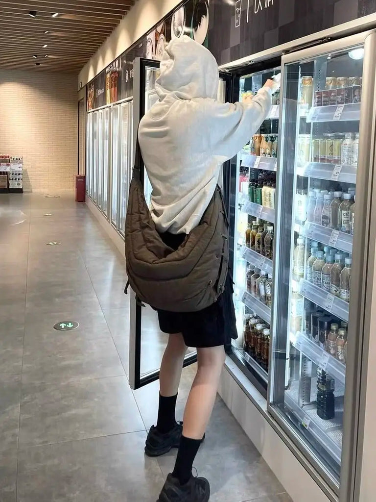 Brown Nylon Tote Bag Women Casual Zipper Shoulder Handbag Crossbody