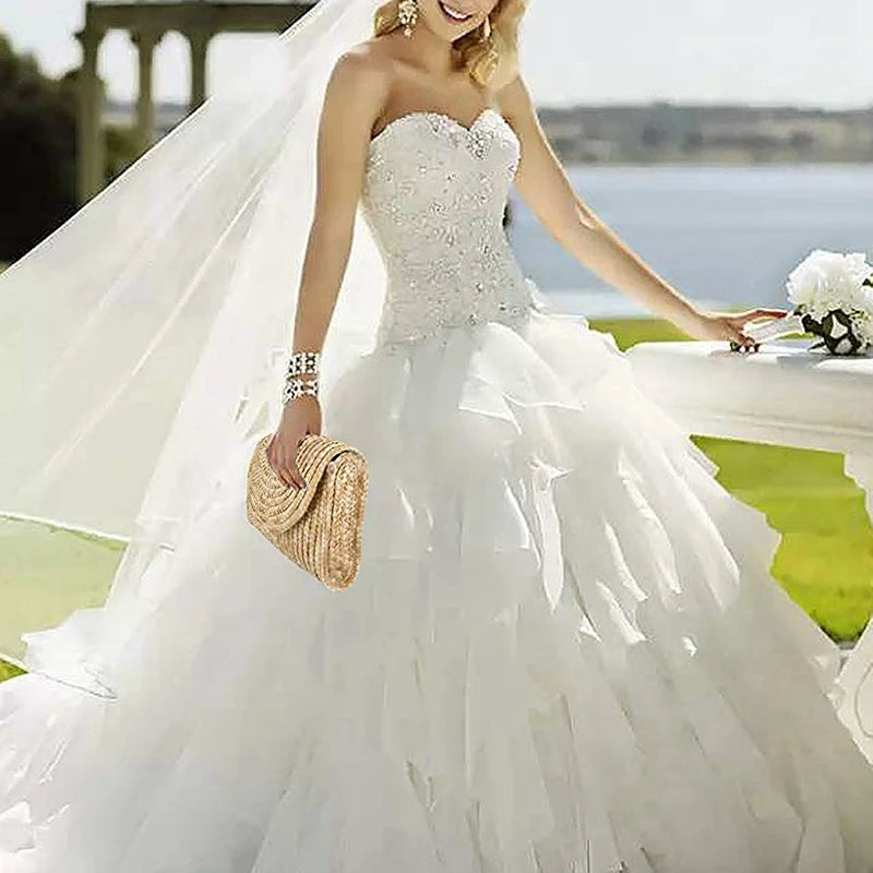 This stylish straw clutch purse is perfect for summer outings or beach days, and can also be a chic accessory for weddings. The envelope design adds a touch of sophistication, and the brown color complements any outfit.