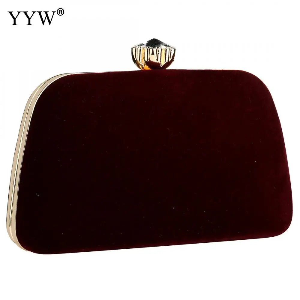 Burgundy Flannelette Clutch Bag Trapezoid Evening Party Clutches Bag