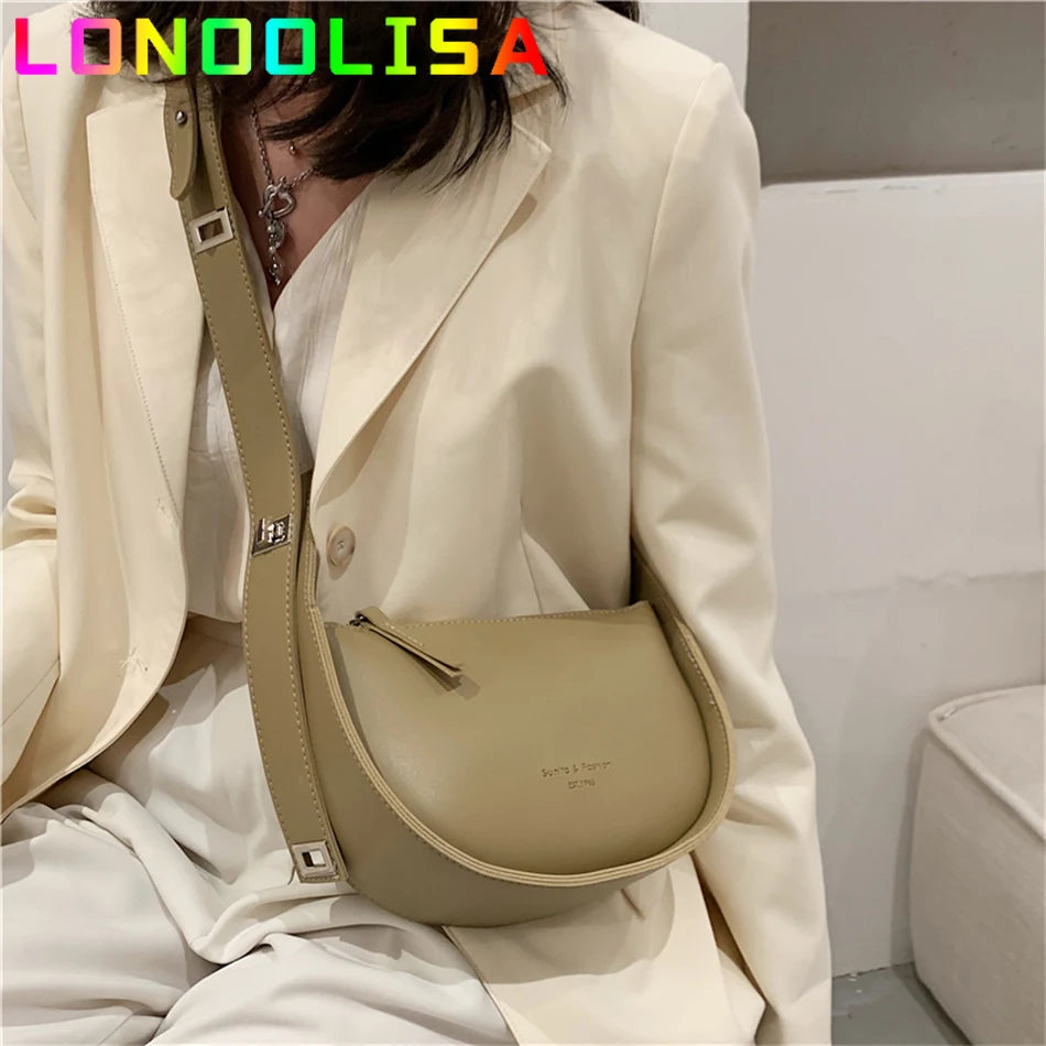 This stylish crossbody bag features a semicircle shape with a saddle shoulder design. It comes with an adjustable wide strap, perfect for girls and women on the go.