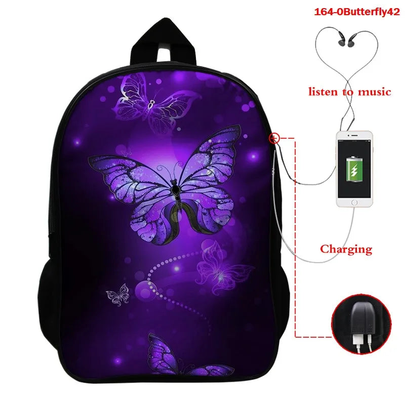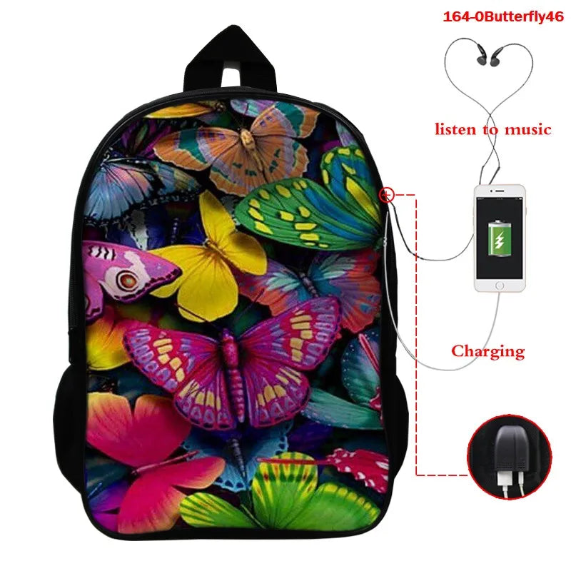 Description:This butterfly 3D printed backpack is perfect for children to carry their school essentials. It features vibrant colors and a fun design that will make going to school an exciting adventure.Features: 3D printed butterfly design Ideal for kids and college students Spacious main compartment Adjustable shoulder straps for comfortable wear...