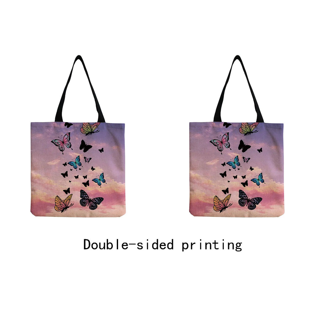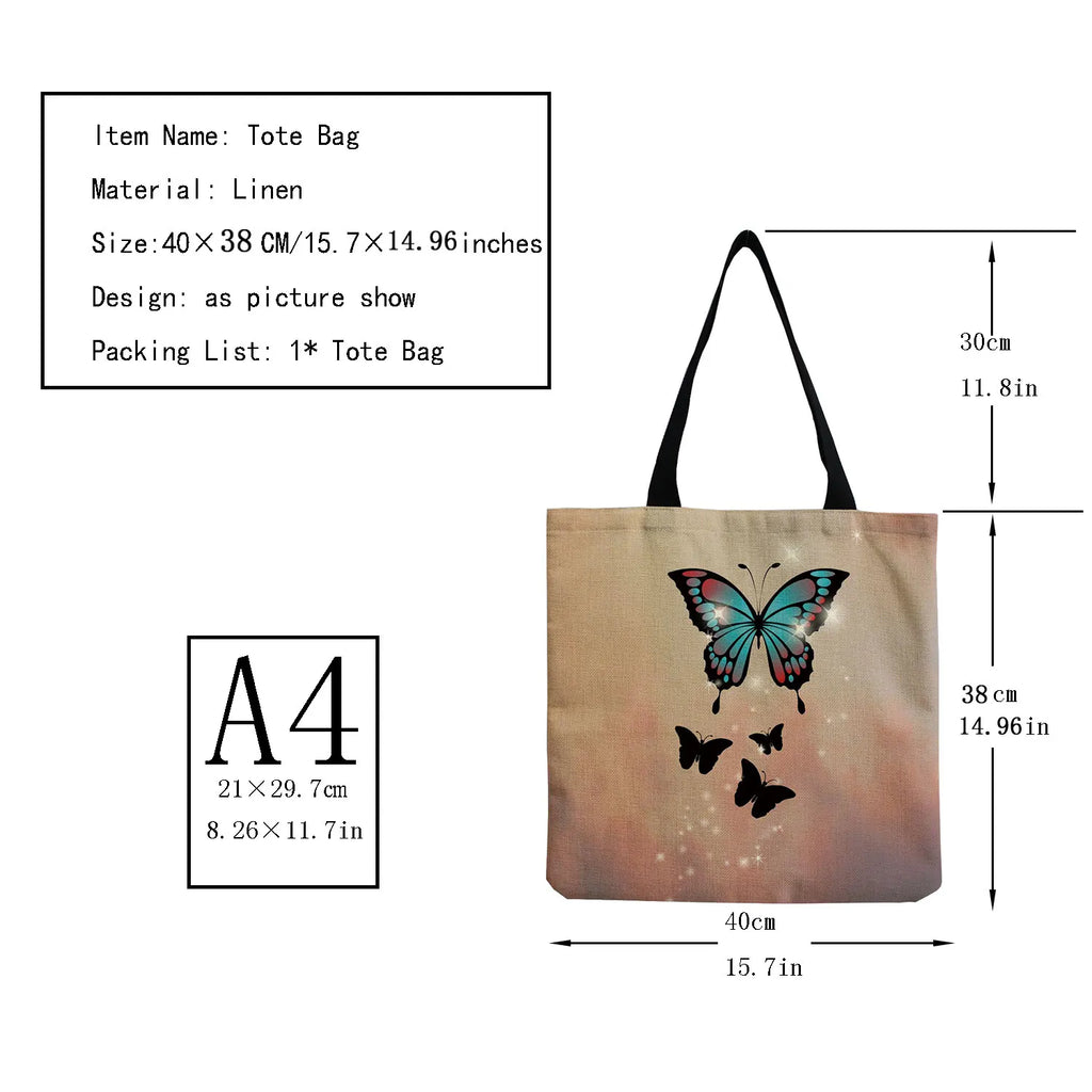 Butterfly Animal Printed Women Shoulder Handbags High Capacity Foldable Shopping