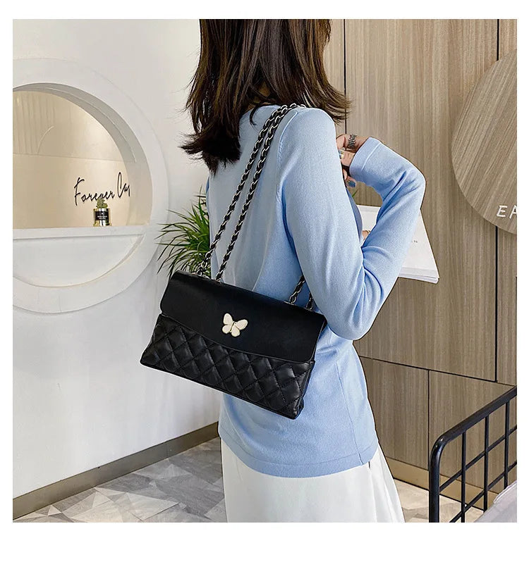 Stay stylish with this quilted butterfly small PU leather crossbody bag. It's perfect for everyday use and adds a touch of elegance to any outfit.