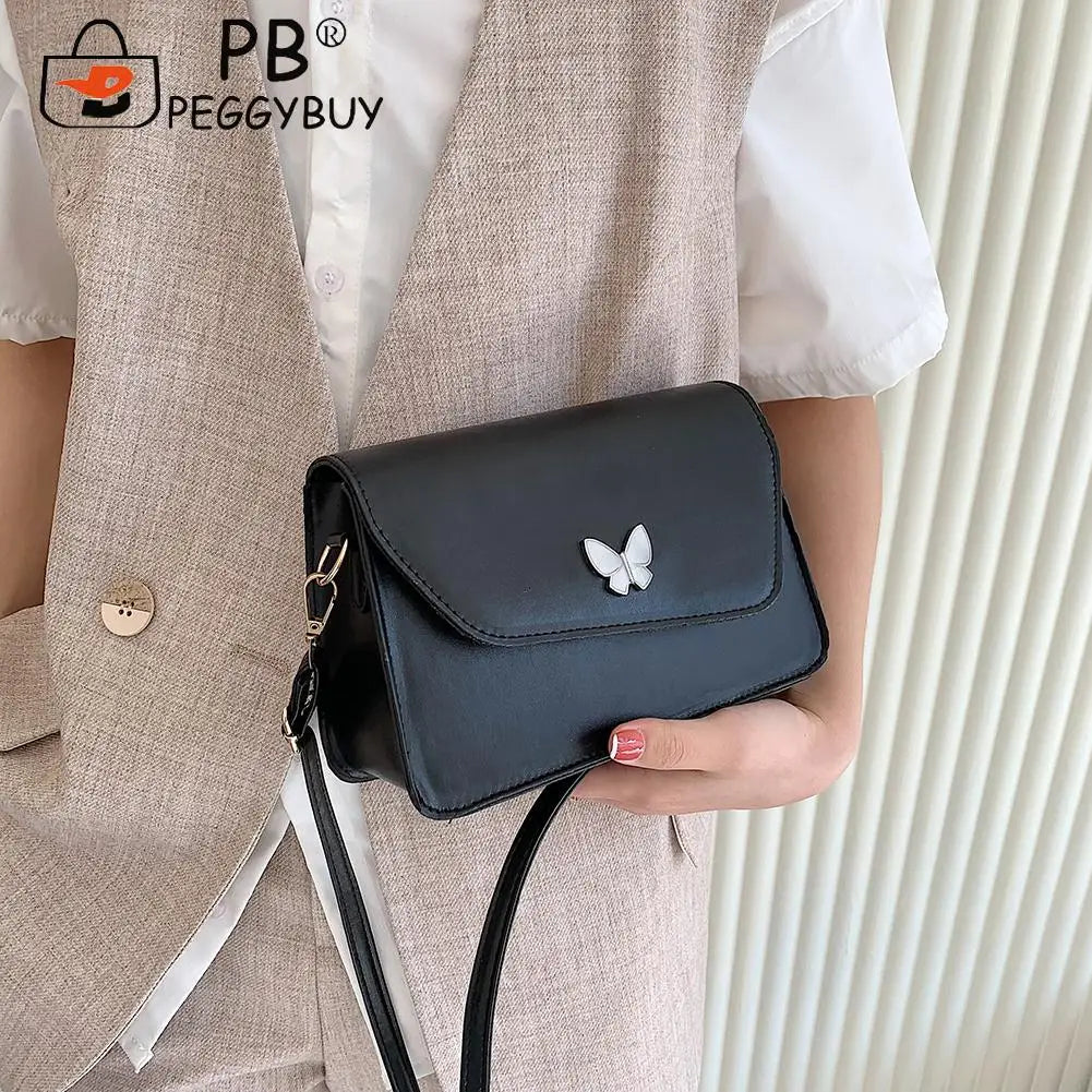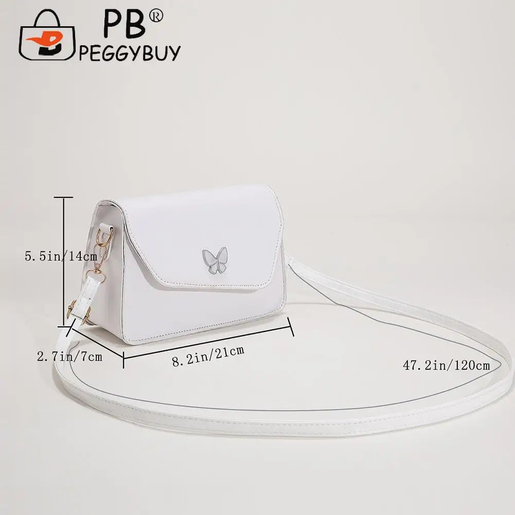 Stay stylish with this PU leather handbag featuring a butterfly design. It's perfect for casual outings and offers a solid flap for added security.