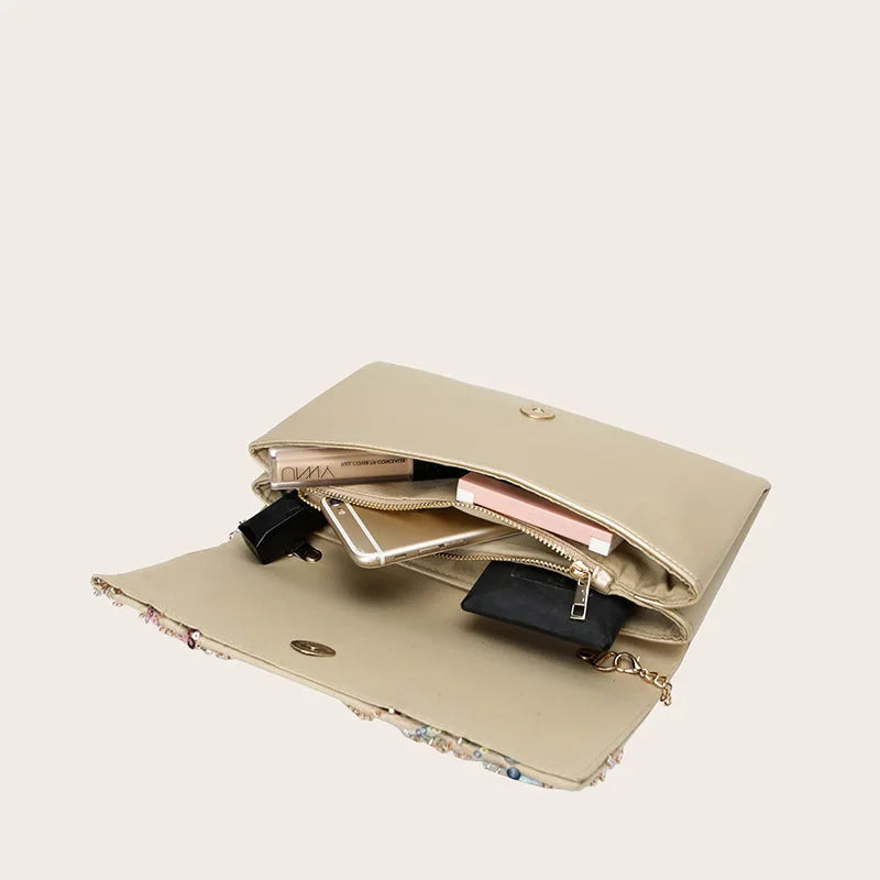 Butterfly Embroidery Shoulder Bag Sequin Glitter Leather Clutch