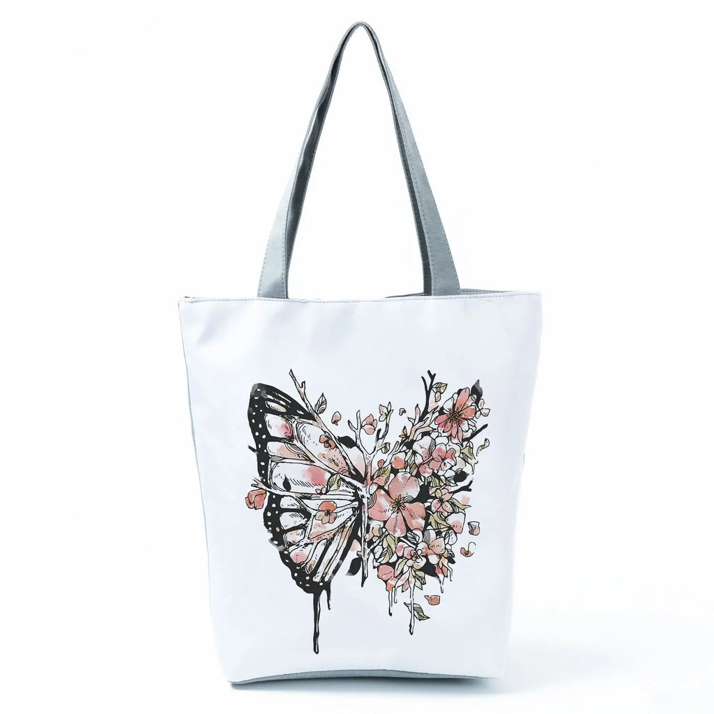 Butterfly Printed Tote Bag Eco Friendly Women Shoulder Bag