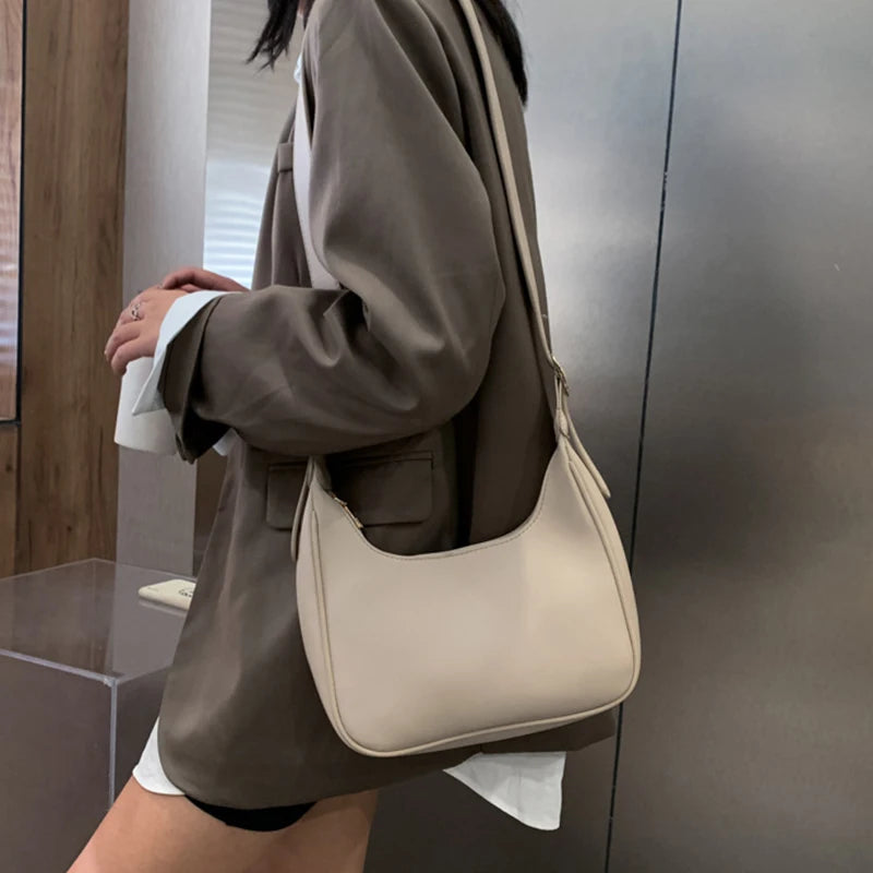 Buylor Female Shoulder Bag PU Leather Street Crescent Retro Mini Underarm Bag
