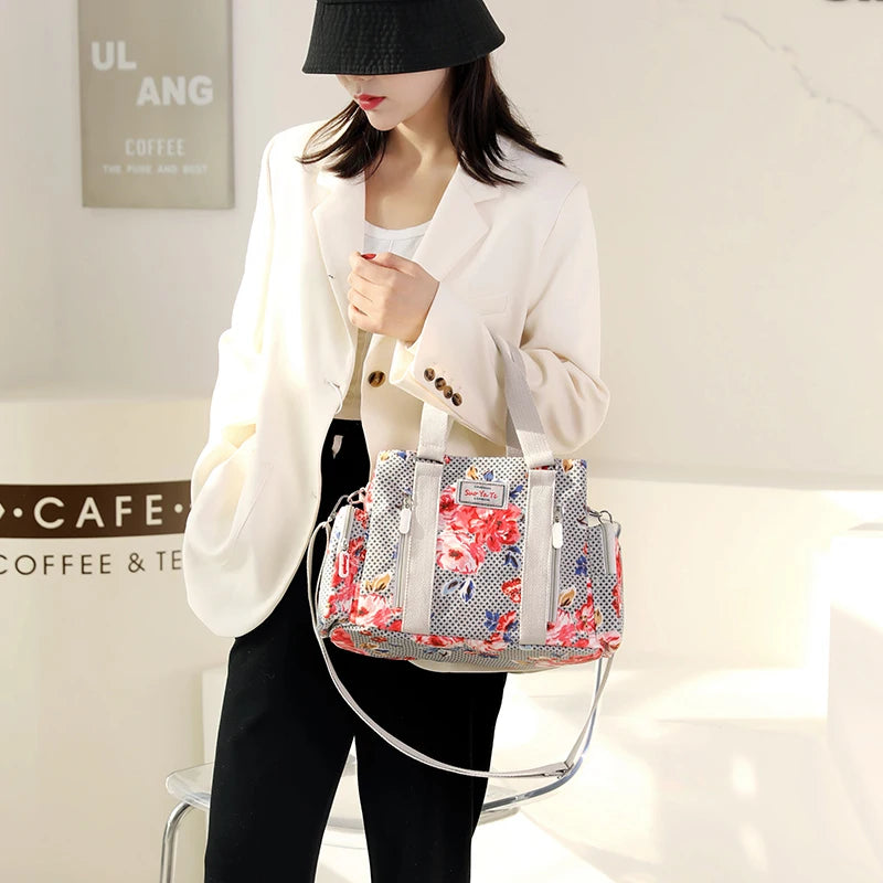 Stay organized with this multifunctional tote bag made of durable nylon material. It features a waterproof design and large capacity, perfect for travel.