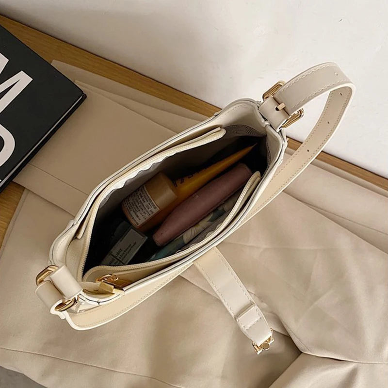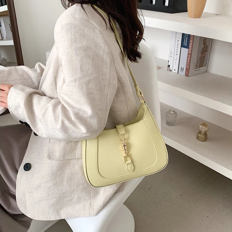 Stay stylish with this designer underarm handbag made of high-quality PU leather. It features a top zipper closure and a spacious interior to keep your essentials organized.