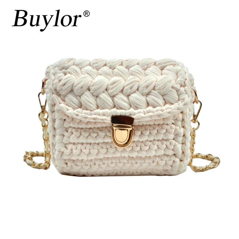 Buylor Women's Woven Tote Bag Chain Knitting Crossbody Shoulder Bags