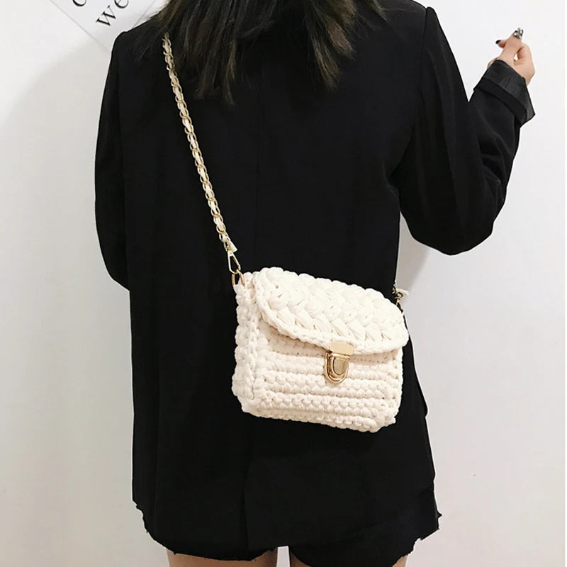 Stay stylish with this chic women's bag featuring intricate weaving and a chain strap. Perfect for carrying essentials.