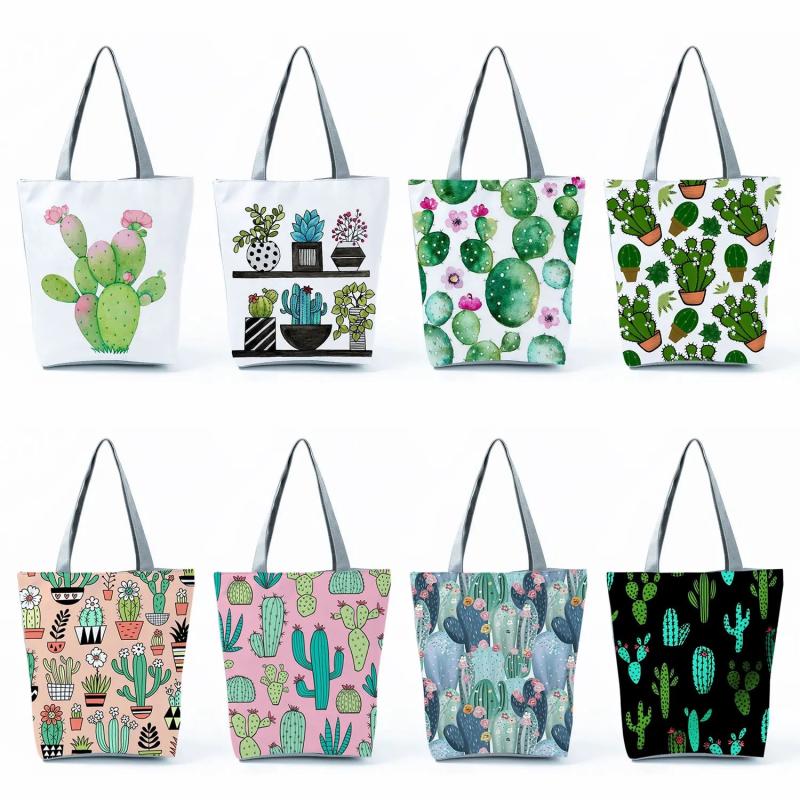 Cactus Print Shoulder Bag Travel Shopping - Portable Plant Tote Handbags