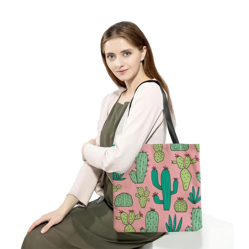 Cactus Print Tote Bag Women Shoulder Bag Large Capacity