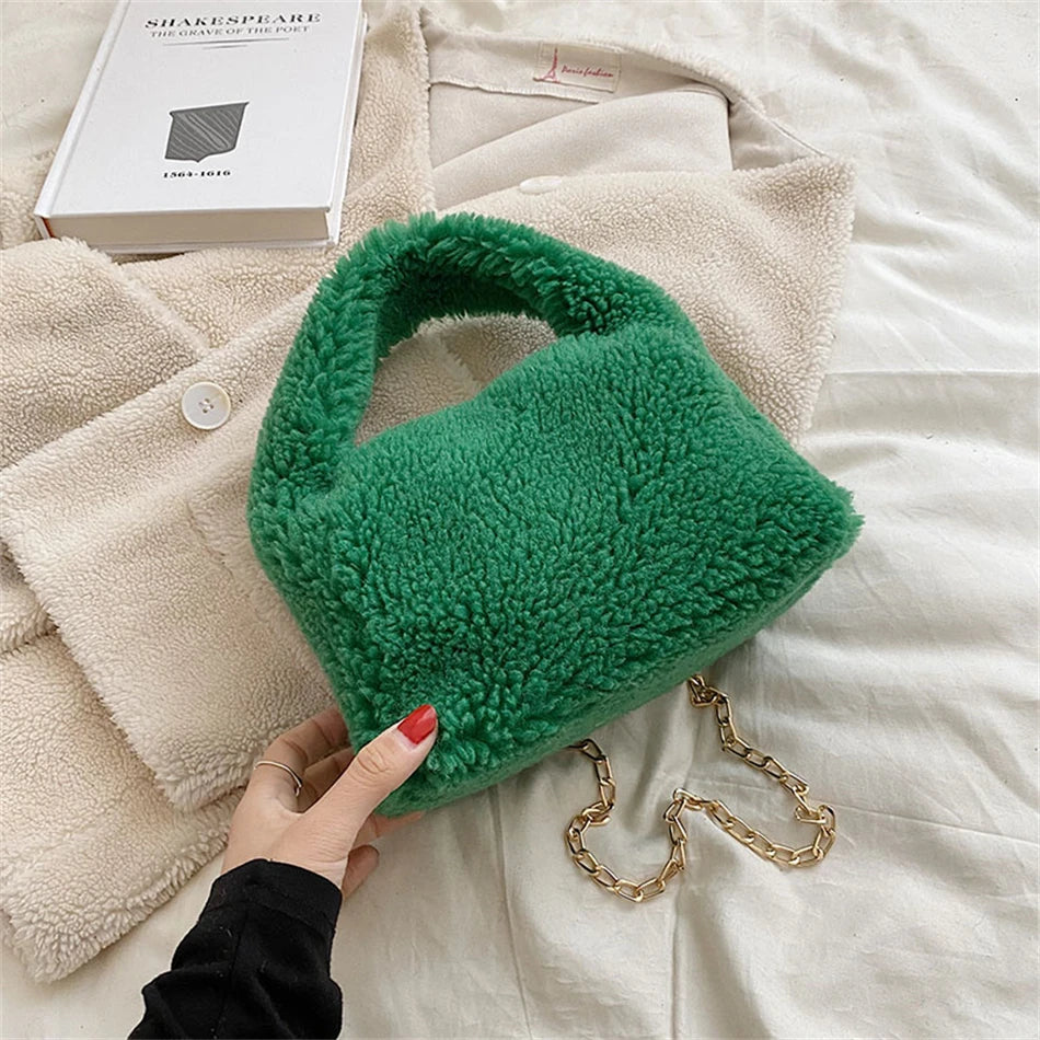 Candy Faux Wool Chain Shoulder Crossbody Bag