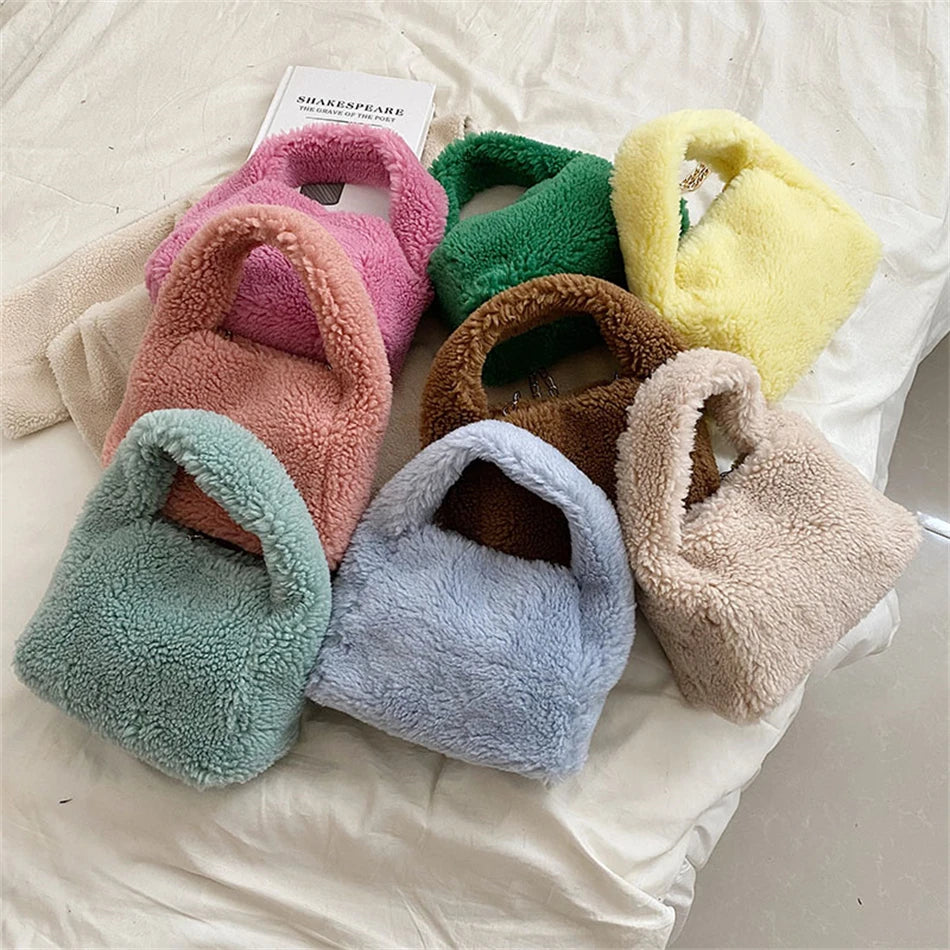 Stay stylish this winter with this small handbag featuring faux wool material. Perfect for carrying essentials with its short handle design.