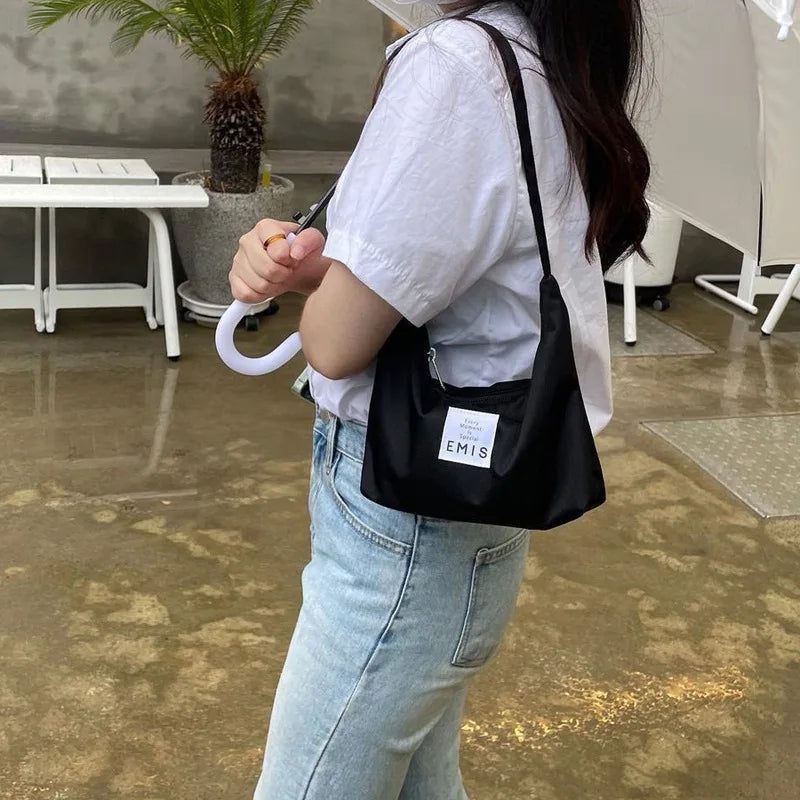 Stay stylish on the go with this portable nylon underarm bag for women. Perfect for carrying essentials with ease.