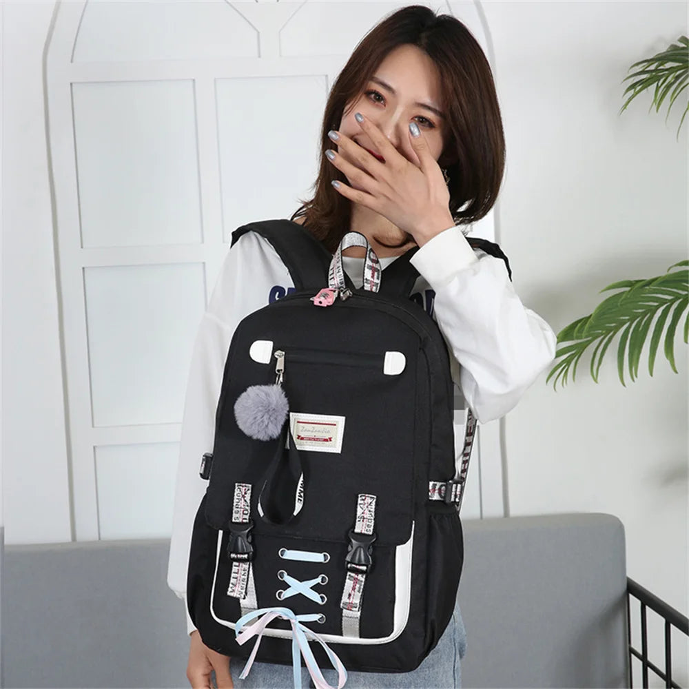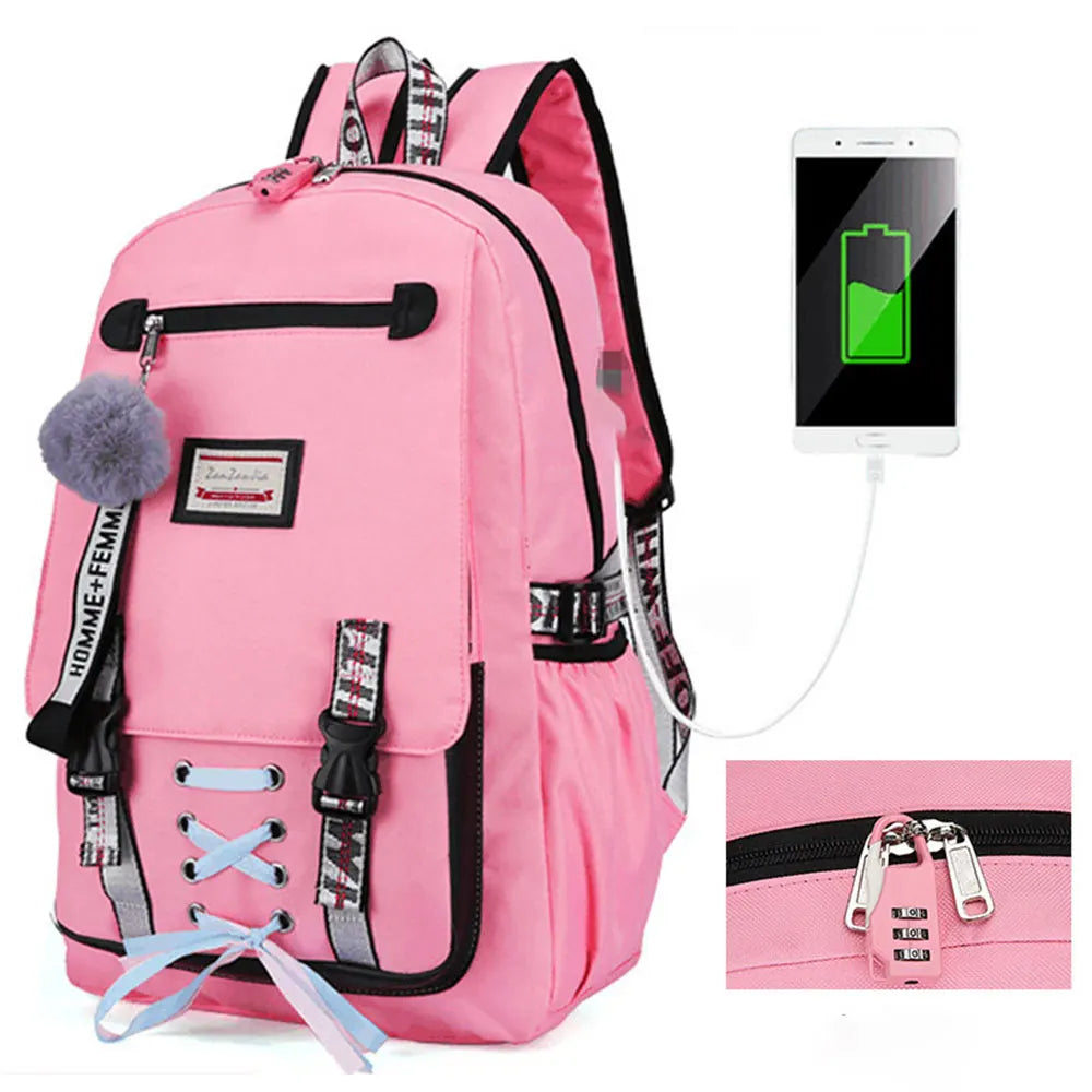 Canvas Backpack for Women USB Port Large Capacity Schoolbag