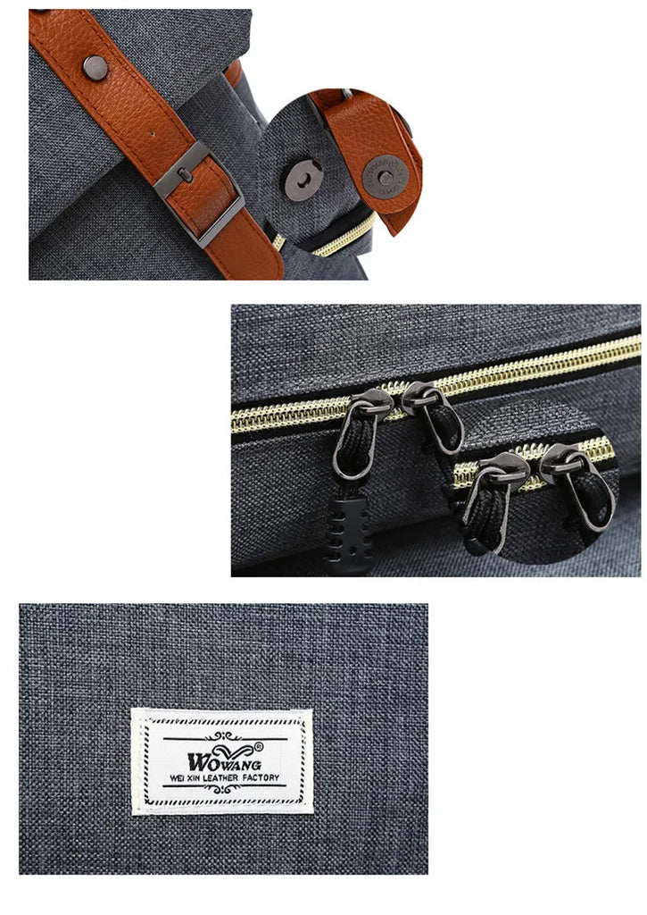 This versatile bag is made of durable canvas and oxford materials, perfect for travel, school, or daily use. Suitable for both men and women.