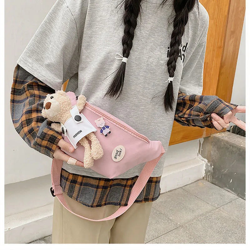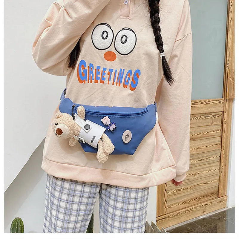 Canvas Bag Women's Chest Bag Bear Cartoon Student Girls Ins One Shoulder Messeng