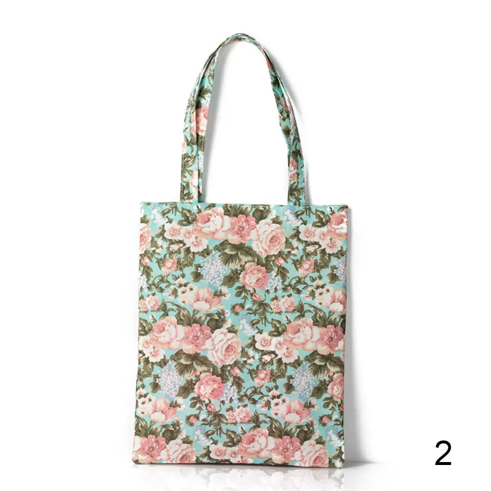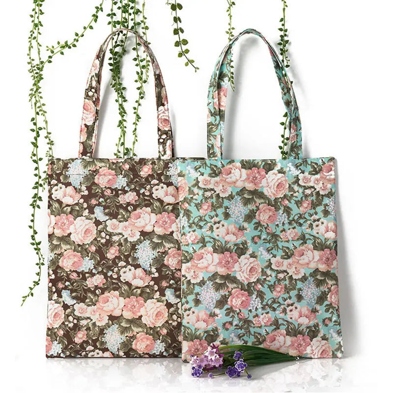 Canvas Beach Bag Floral Printed Tote Waterproof Shoulder Bag