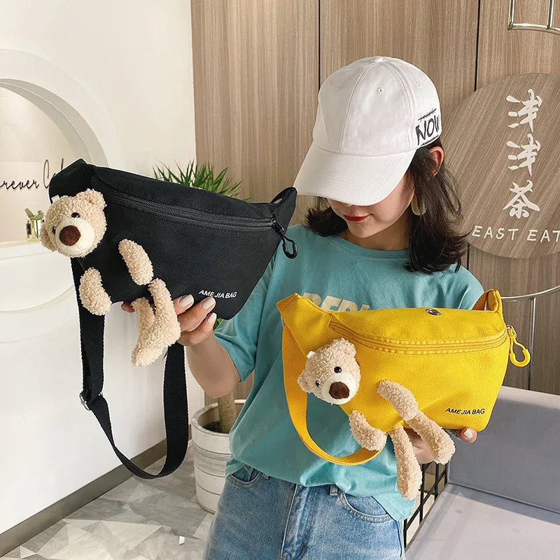 Canvas Belt Bag Cartoon Bear Cross-body Chest Outdoor Female One