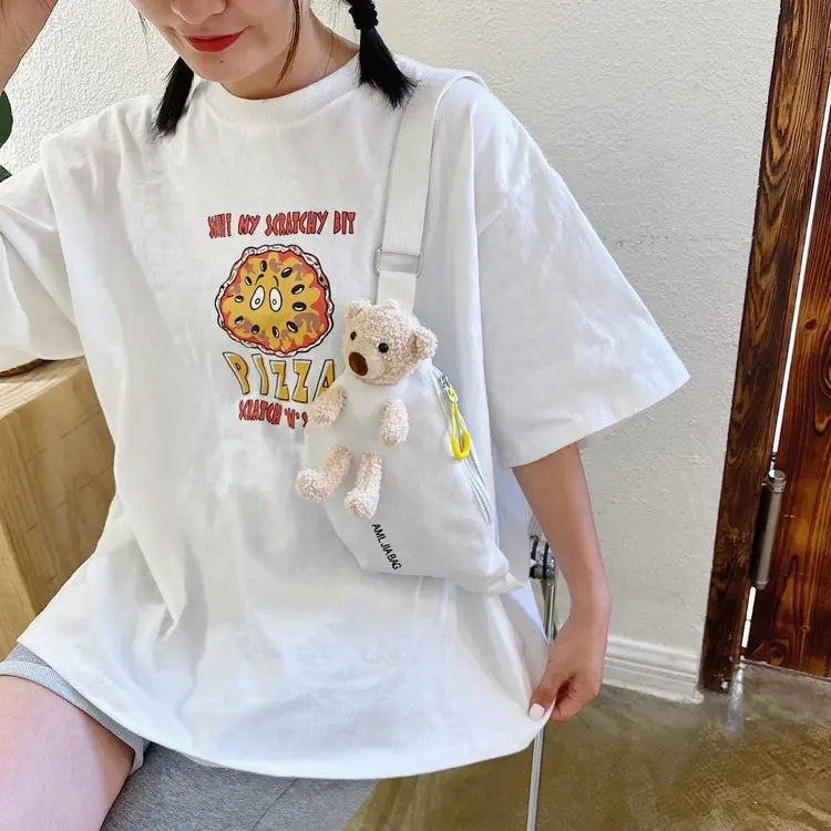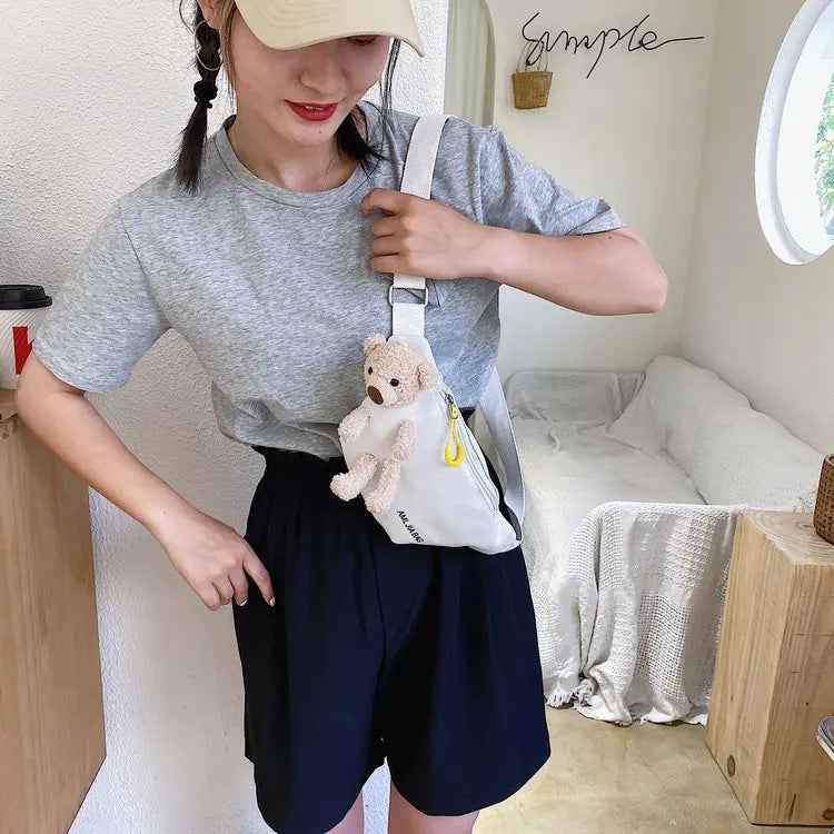 Canvas Belt Bags Crossbody Chest Bag Bear Women's Waist Bag Female Fanny Pack