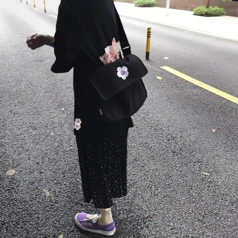 This casual canvas bucket bag is made of soft, solid material with a beautiful flower design. It features a zipper closure for security and convenience.