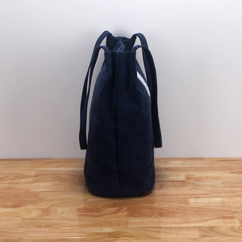 This thick canvas bucket bag is perfect for daily use, featuring a large capacity and foldable design. Ideal for carrying books, pads, and shopping items.
