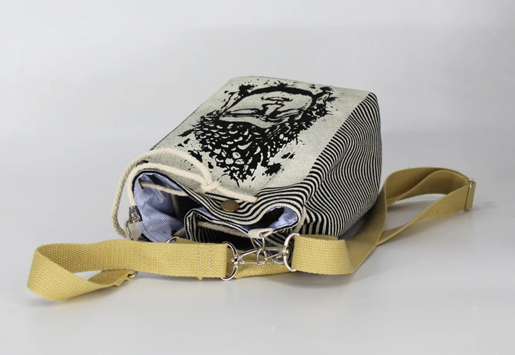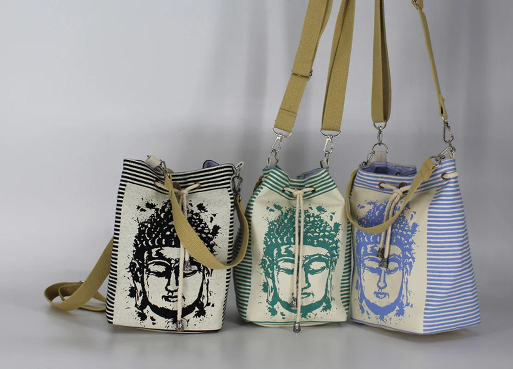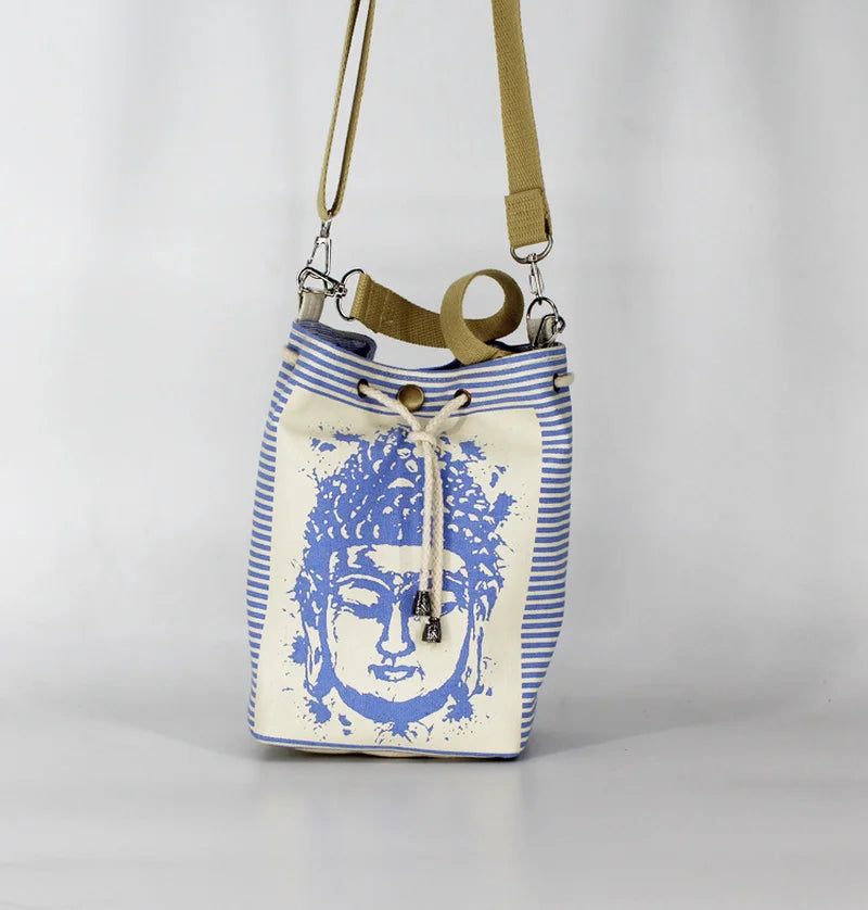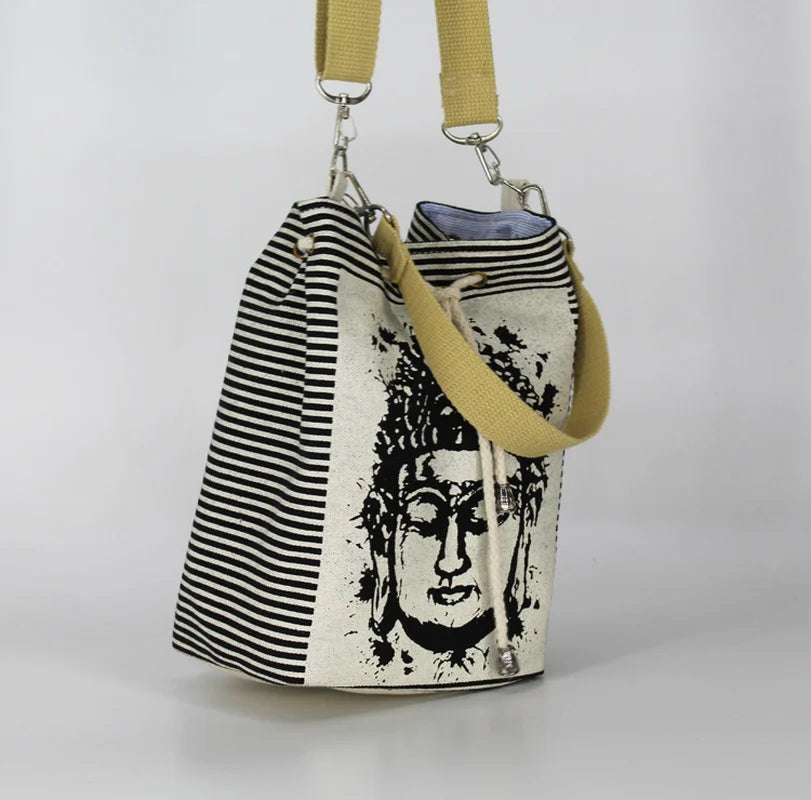 Canvas Buddha Print Bucket Bag Cross Body Shoulder Hand Bag
